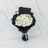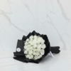 A sophisticated cluster of two dozen premium white roses set against dramatic midnight-black wrapping for a high-contrast, modern aesthetic. This signature piece is designed to stand out, making it the perfect choice for formal celebrations or an elegant romantic gesture.